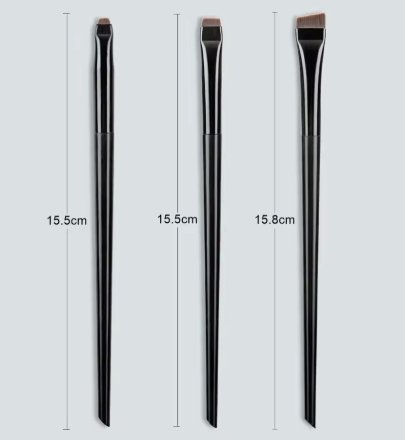 3 Pcs (Black & Rose Gold) – Fine angled, ultra thin, oblique head brushes for eyebrows, eyeliner or lips